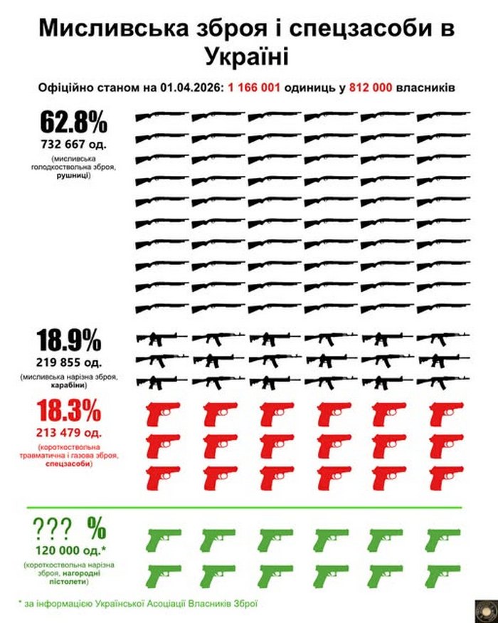 Ми дуже обережно, занижуючи реальну картину, вказуємо на кількість цих «достойників» та акцентуємо увагу, що серед цієї категорії власників зброї максимум (!!!) 20% тих, хто отримав її заслужено. Решта — це легалізований корупційний обіг.